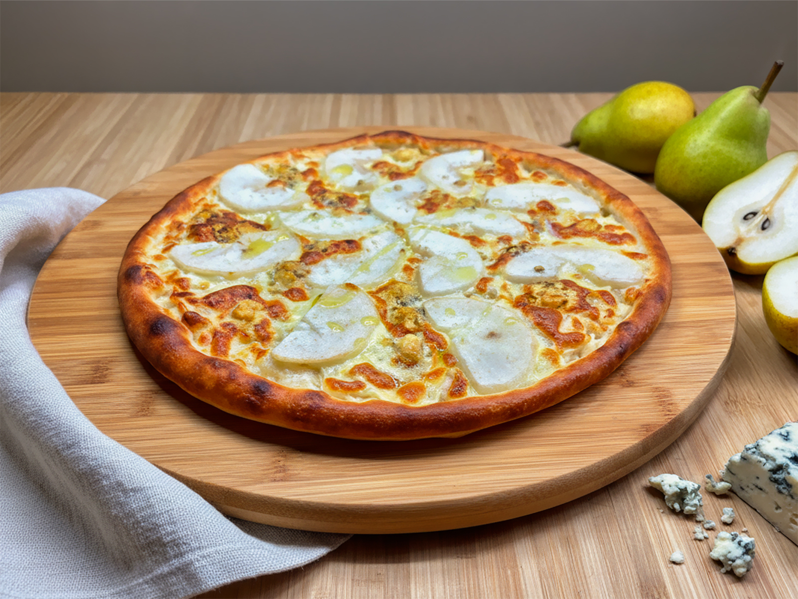 Сыр моцарелла, груша, сливки, сыр дор блю, масло оливковое